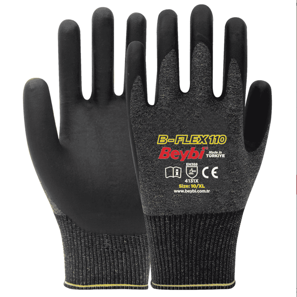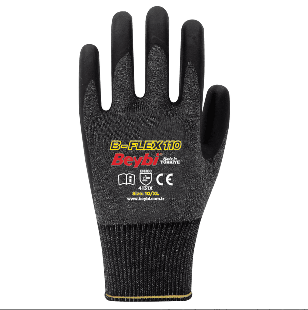 B-FLEX110 gloves offer the perfect balance between comfort, dexterity, and protection. The Lycra lining and foam nitrile coating make the glove much softer and more flexible. This provides superior grip and comfortable movement without constricting or causing sweating. The flexible cuff ensures a perfect fit to your wrist. They are highly resistant to abrasion and tearing. REACH compliant.
