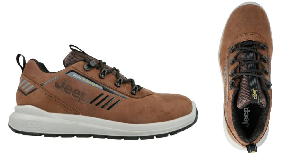 Description: Brown low-cut Cherokee safety shoe with full grain leather construction, cushioned PU/PU sole, and S3L protection for everyday professional use.